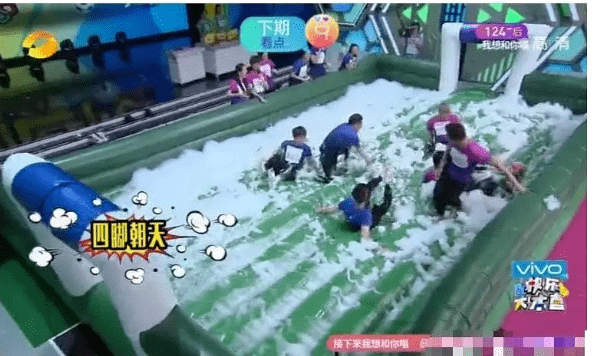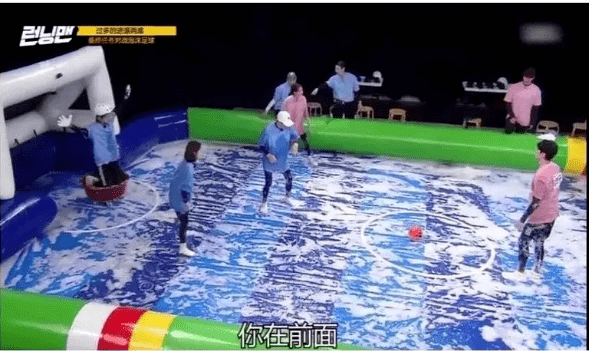也不是,南韩“大神之光”的running man,也涉嫌抄袭过快本的一次游戏节目,就是这个充气垫上玩游戏的环节!