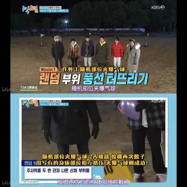 这个是《两天一夜》的综艺环节——夹爆气球!