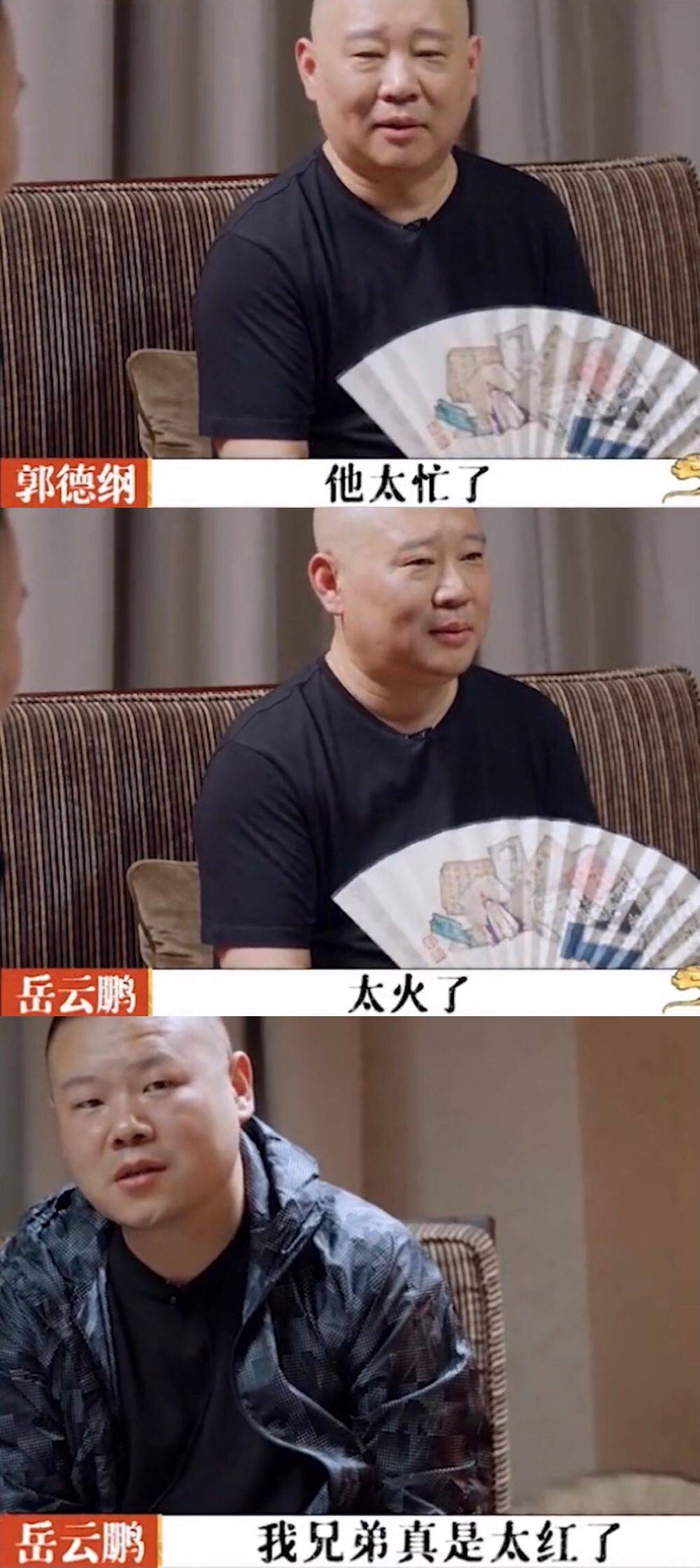 对话中,岳云鹏也一次次强调“我兄弟(郭麒麟)太火了太红了”。