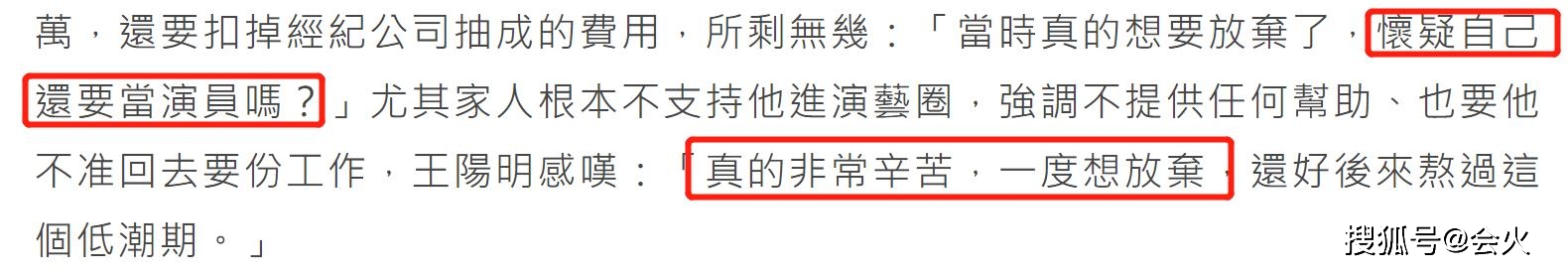 面临工作和经济的双重压力,王阳明坦言当时一度想要放弃,还质疑自己是否要继续当演员。