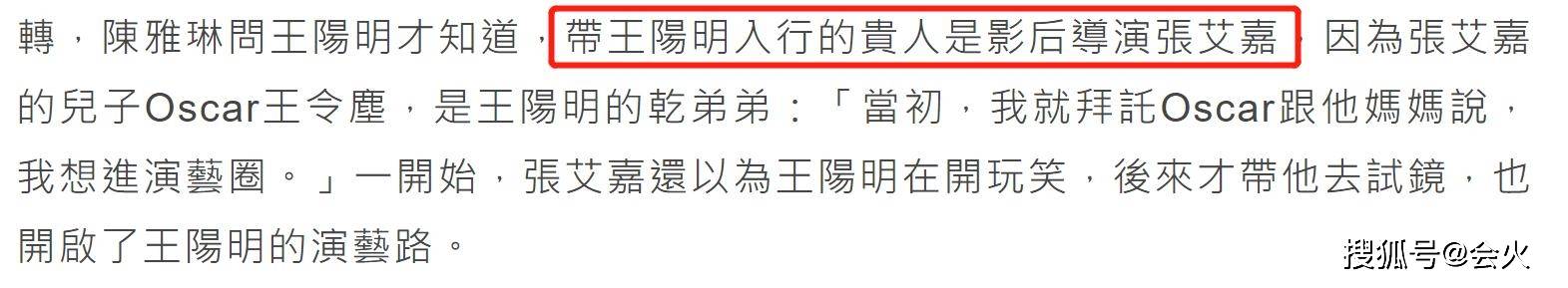 其实,王阳明入行时已经28岁,对演艺圈来说已算大龄新人。他在受访时还透露,自己是靠影后张艾嘉的引荐才得以入行。