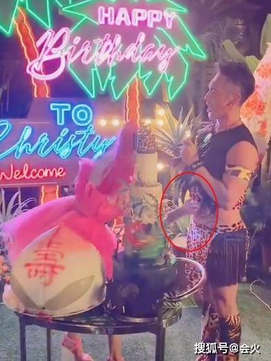 钟丽缇扮小公主庆50“大寿”,小12岁老公扮野人,派对寿桃太吸睛 -
