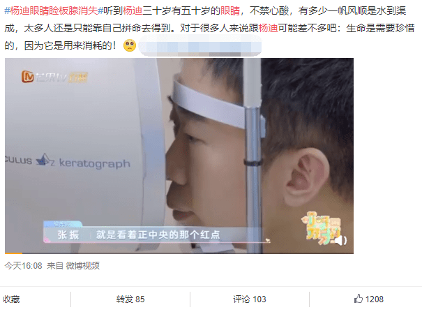 在最新一期《哎呀好身材》里,杨迪去医院检查眼睛时,被医生告知眼睛睑板腺消失,也就意味着30岁的眼睛,已经是50岁的状态了。