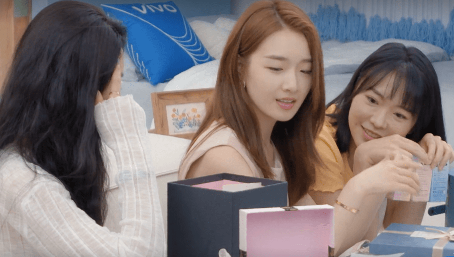 而在第二期中,三位女嘉宾礼物盒子时,姚沐希再次自动坐在了中间,最后钟钟和郑琴心不得不坐在她的两边。