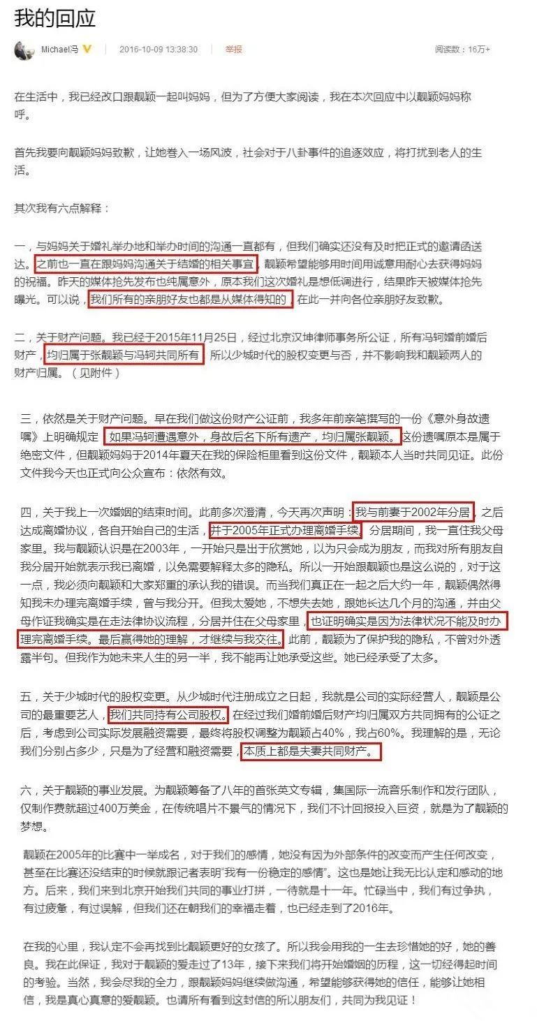 之后,冯轲本人也承认了这件事情,但是他表示:自己的确结婚了,但和老婆因为观念不合经常吵架,后来老婆出国了,儿子也被她带走了。