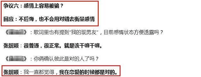 关于自己的新恋情,张靓颖也在采访中公开回应了此事。