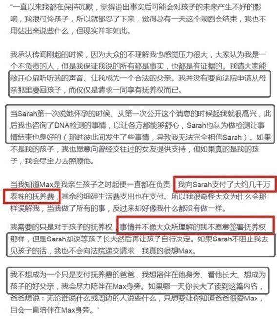 话题回到Mike,在前段时间,前女友突然不让Mike看望孩子了,因此他晒出父子同框照并向女友提起诉讼,强调不是抢夺抚养权而是共同抚养,只是拿回自己的权利。