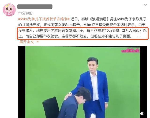 真正引爆热点是在Mike在17日接受采访的内容曝光。他在节目中透露(因为疫情)自己没有收入在吃老本,每个月还要省吃俭用付2万多人民币给前女友照顾儿子,连餐厅都不敢去,而自己今年只见到儿子两次。