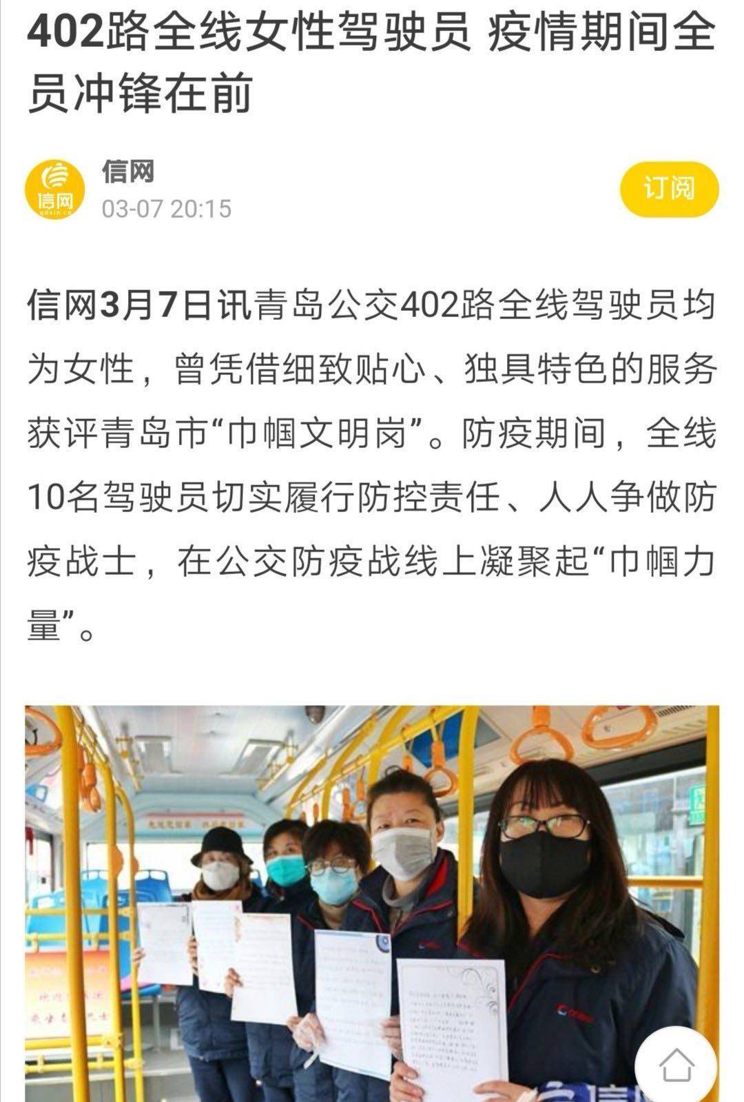 网友还晒出青岛女驾驶员们在抗疫期间坚持上班所作出的贡献,电视剧讲的是武汉,晒出青岛的女驾驶员也说明不了什么,最关键的是能晒出武汉女公交车驾驶员不存在做思想工作积极参加运输才是最有力的证据,但貌似网友并没有晒出这方面的报道。