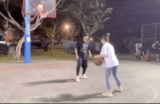 而后,昆凌突然发力,向周杰伦发起了进攻,右手运篮球,从左边突击并上篮,假动作做的十分的漂亮;而周杰伦也是十分的宠妻了,整个人非常随意的去尝试拦截妻子昆凌,拦截失败后,还看着昆凌完成了三步上篮的动作,把篮球稳稳的投进了篮筐里,还自己耸耸肩摊手表示自己很无奈。