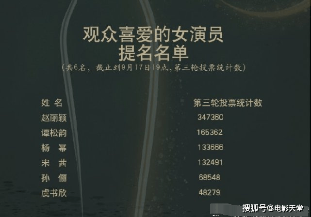 9月17号,金鹰奖的第三轮投票结果出炉了,在观众喜爱的男女演员这个奖项上,之前的竞争还可以说是激烈,但到了这第三轮,就只能说是单方面的碾压了。在观众喜爱的女演员投票中,赵丽颖以347360的选票高居榜首,而男演员投票更加离谱,王一博一个人独得1309019的选票。