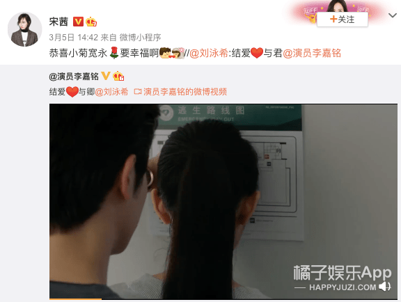 宋茜和黄景瑜都送上了祝福。