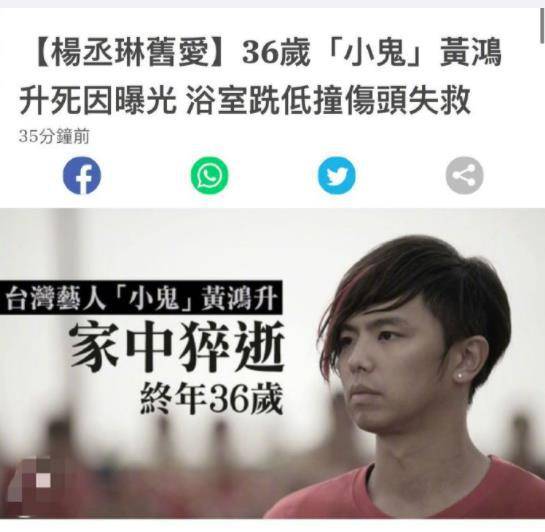 据悉,根据警方初步调查,黄鸿升当时浴室水放好,衣服有穿,但裤子半脱倒卧浴室门口,疑似猝死,现场无任何药物、 酒瓶,小鬼口鼻出血,直至16日上午才被男性家属发现。