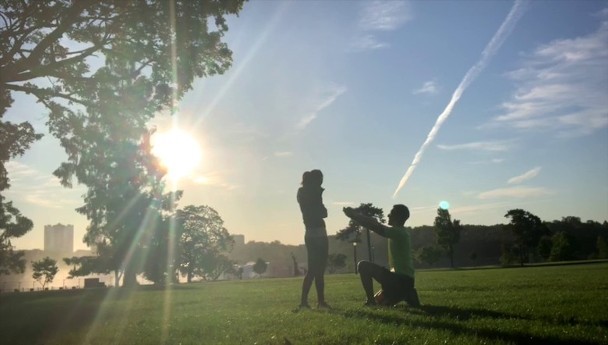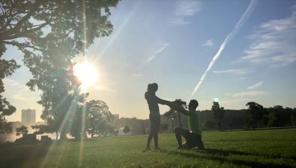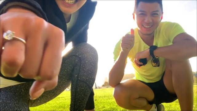 求婚当天,袁伟豪与张宝儿穿着运动衣,在加拿大尼亚加拉大瀑布前一同锻炼,享受美好的阳光。