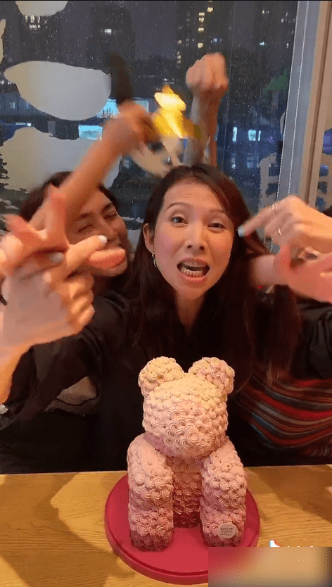 洪欣蔡少芬朱茵陈法蓉可是娱乐圈的模范好闺蜜,几乎是每一年的生日都不会缺席,这样的友情正是令人羡慕。而洪欣面前放着一个由小花组成的小熊蛋糕,还是粉色系,看来虽然是47岁,蔡少芬依然是充满少女心。