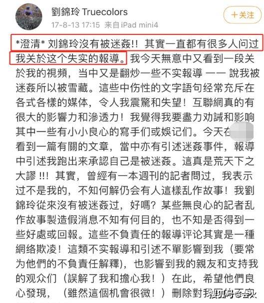 当绑架案风波过后,刘锦玲转而在社交平台多次澄清,谴责媒体的失实报道,直言某些报道中的中伤性语句令她本人失望和震惊。