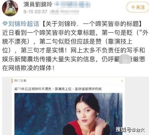 9月15日凌晨,演员刘锦玲在个人社交平台发布了一则澄清动态。