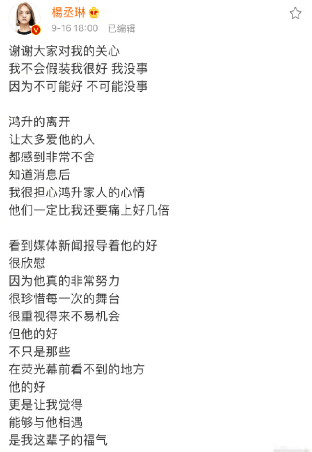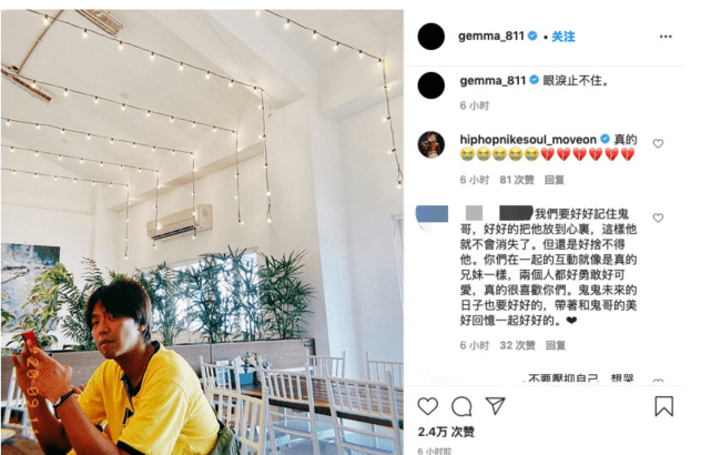 鬼鬼吴映洁也连发三条动态悼念黄鸿升,还把社交账号的头像换成了全黑,可见其心情悲痛。在鬼鬼心里,黄鸿升是温暖有爱的大哥哥,给了自己太多的帮助和关爱。