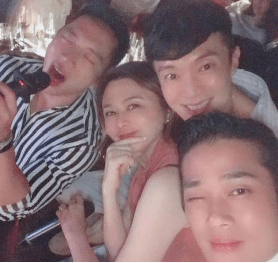 玩嗨的时候,关之琳还会同时跟多位帅哥合照,享受被许多男人众星捧月般的簇拥,关之琳的笑容非常灿烂,可以看得出是由心而发的喜悦。也许这就是关之琳会一直留恋于男人之中的原因,能时常保持好心情和年轻状态。