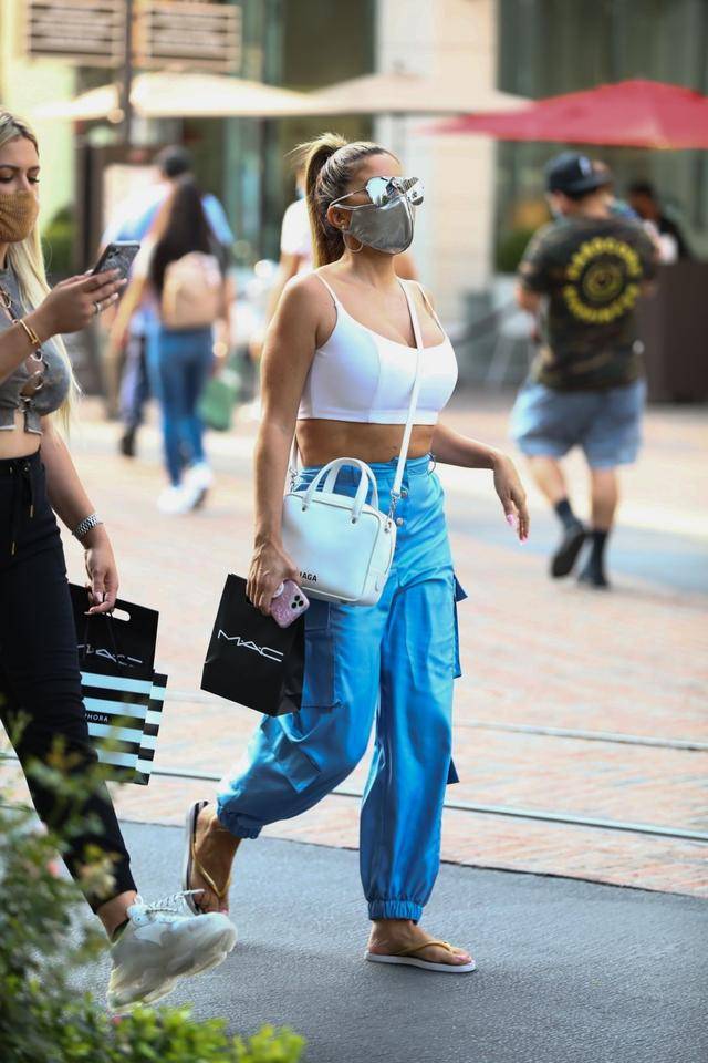 女星拉萨·皮蓬(Larsa Pippen)穿着蓝色长裤配小背心,现身洛杉矶街头。