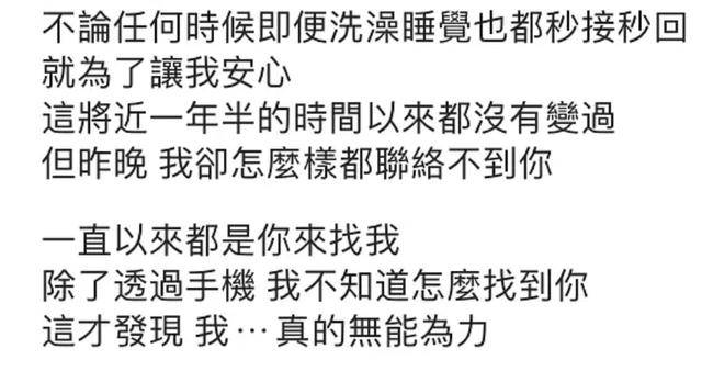 她除了描述小鬼作为男友的贴心与称职外,还说到两人相恋一年多,自己除了手机,却不知道去哪里找他。而且一直都是小鬼主动。