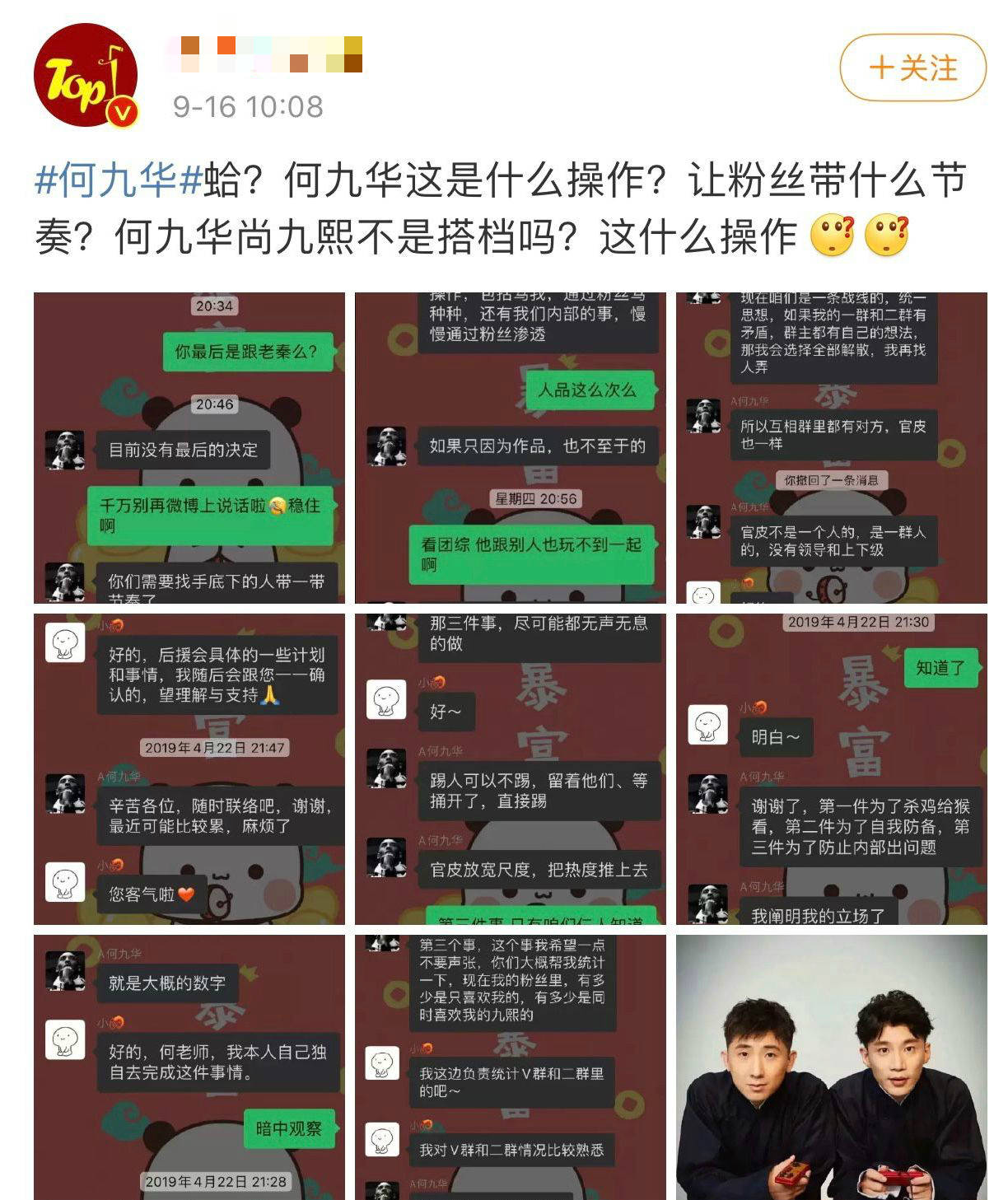 所以说,上述的所谓何九华与粉丝的对话截图,大概率是伪造的、假冒的,目的就是想挑拨德云社兄弟、粉丝之间的关系。