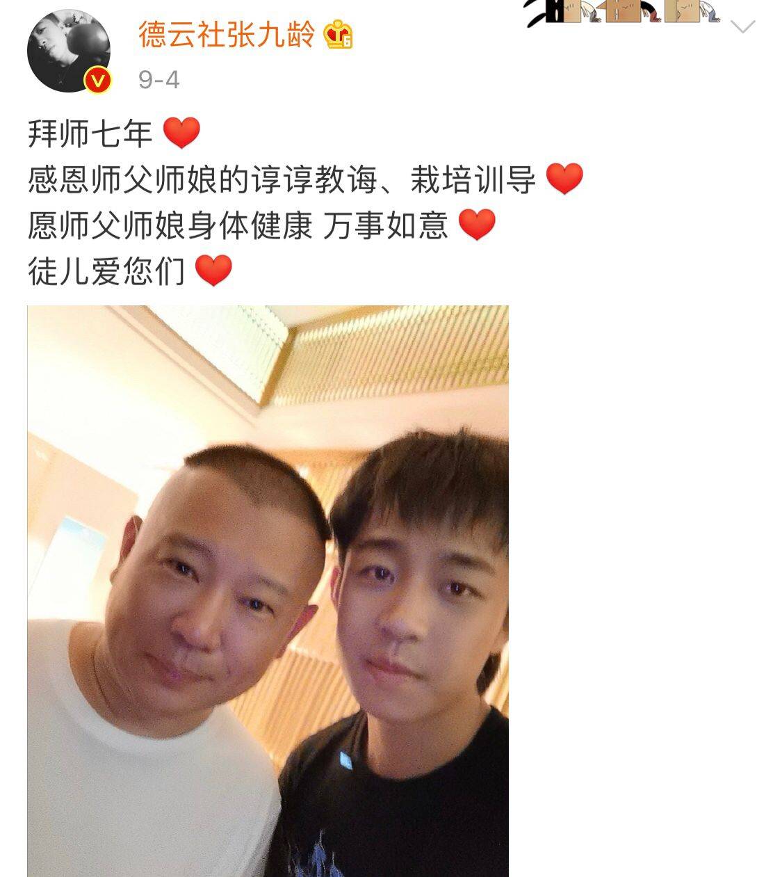 所以,在前几天,也就是9月4日,杨九郎、周九良、张九龄、王九龙、张九南等也都发文感谢了师父郭德纲。