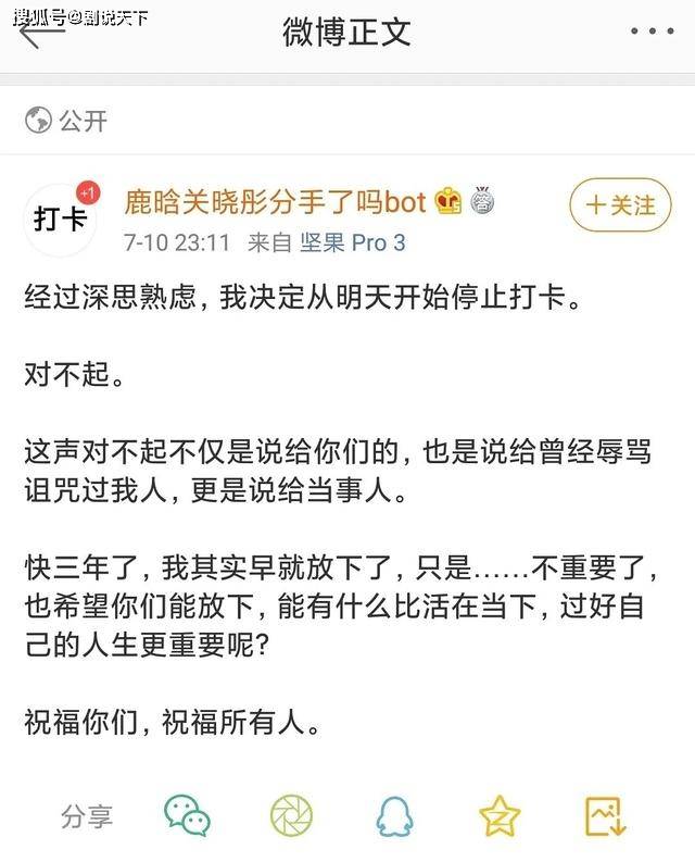 就连专门为二人分手打卡的微博,也在今年7月份选择了祝福,看来是被二人的爱情感化。