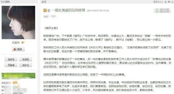 后来加上滕华涛导演的助阵,白百何在气势上就“大获全胜”。而这番较量,最终以王珞丹不得不回家进行检讨,写了一篇《一个女演员的自我修理》才算告终。