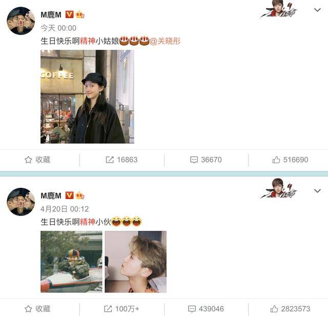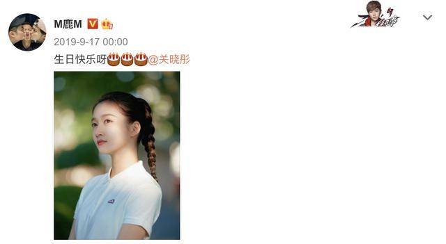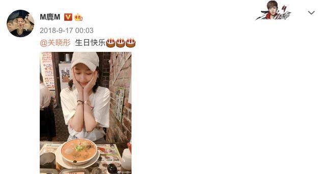 9月17日零点,鹿晗晒照并说道:生日快乐啊精神小姑娘!还艾特了关晓彤。