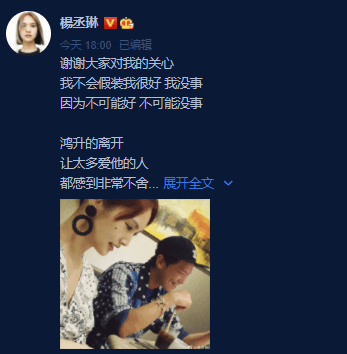 黄鸿升曾经和杨丞琳谈过恋爱,虽然杨丞琳已经和黄鸿升分手,但是两个人并没有像很多情侣那样分手后就老死不相往来,杨丞琳后来和黄鸿升的关系依旧很好,两个人把曾经的爱情转化成了亲情。杨丞最近的工作量很大,她在筹备自己新专辑的事情,杨丞琳这一次为了自己的新专辑下了血本,经常忙到连轴转,但是在得知黄鸿升去世的消息后,杨丞琳推掉了当天所有的工作,沉痛的心情压抑着她,让她没有办法专心工作,杨丞琳说道:"鸿升对我来说就像家人般的存在,我会永远想念他。"随后杨丞琳的老公李荣浩也发文悼念黄鸿升:"我真的不敢相信,这么好的人,朋友一路走好。"