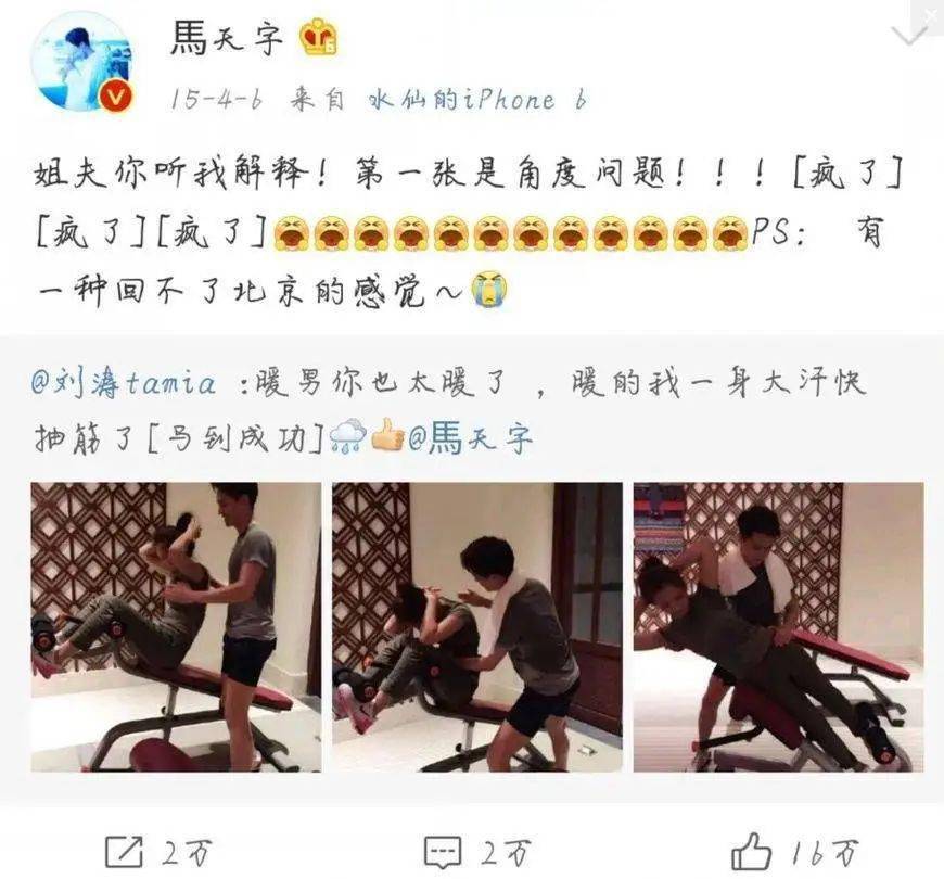 同样在2015年,刘涛和马天宇的一组“健身照”爆出,网上都说刘涛恋上了小鲜肉。