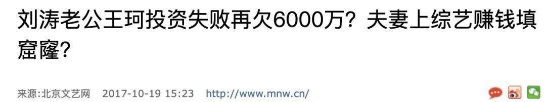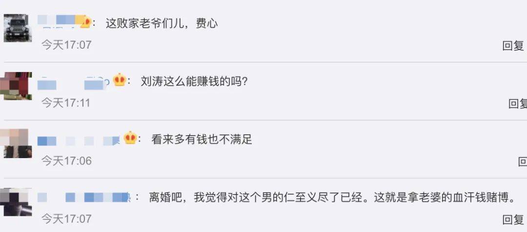 众所周知,王珂经历生意低谷时,全靠刘涛复出拍戏才熬过来。现在又爆出欠了12亿,不少网友都吐槽:“这败家老爷们真费心,刘涛这么能赚钱吗?看来有多少钱也不满足,赶紧离婚吧!”