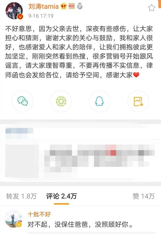 到了晚上,王珂发声辟谣,维护刘涛,他很内疚在岳父去世的时候,没能保护好妻子。