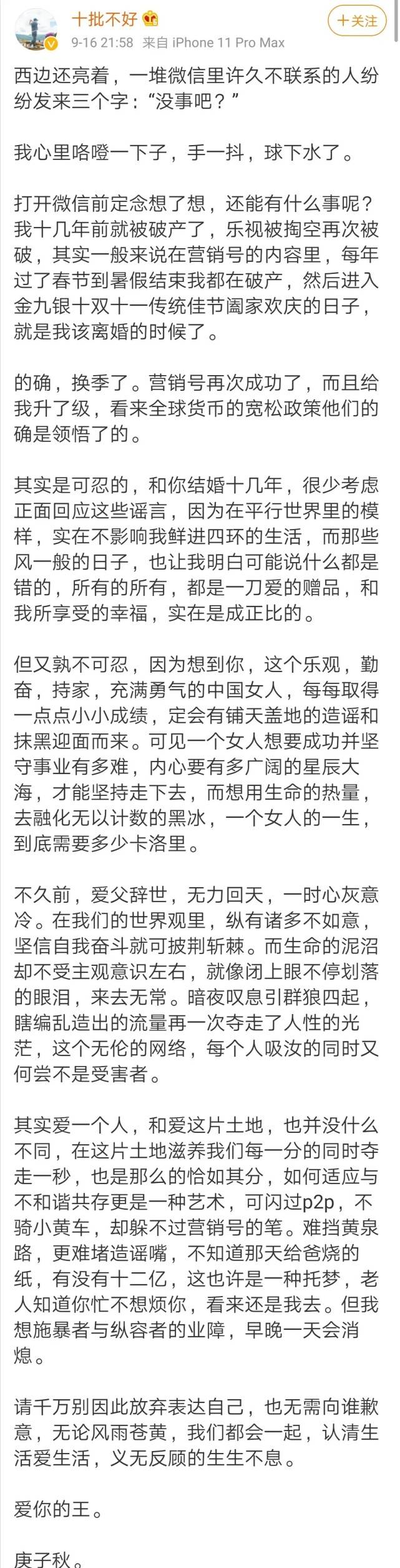正当他们迎来幸福日子之际,9月16日,一篇报道横空出生,造谣王珂投资亏损12亿,其中有5亿是借贷,还说刘涛无奈决定离婚。