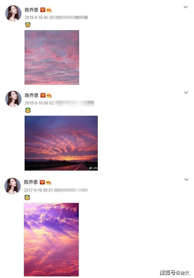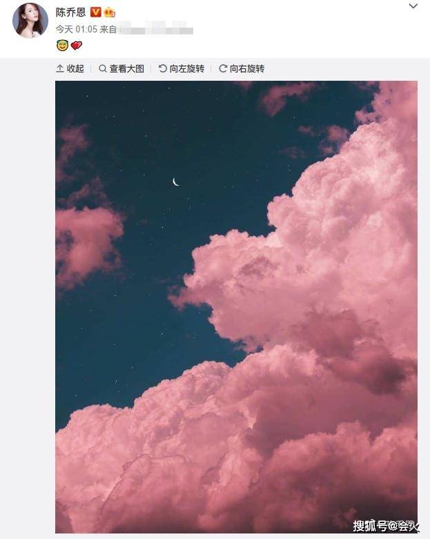 9月16日,陈乔恩在社交平台上晒出了一张粉色天空的照片,并配上小天使和爱心的图像,以此来悼念逝去的好友乔任梁。