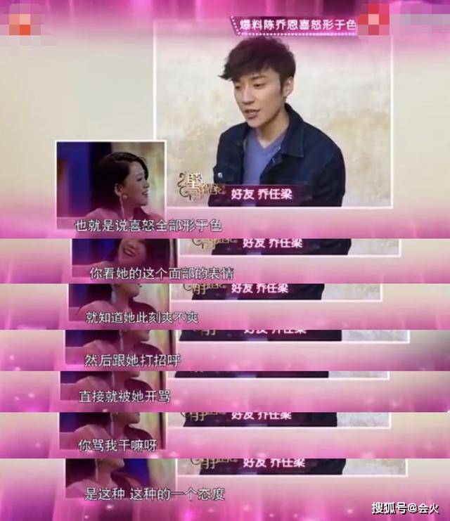 在乔任梁眼中,陈乔恩是一个大大咧咧,喜怒形于色的人。他曾爆料道此前一起拍戏时,自己跟陈乔恩打招呼却被她"骂"了,后来才知道陈乔恩只是因为心情不好才对他"撒气"。可见陈乔恩的个性十分直爽。