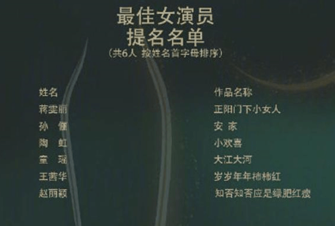 对照女演员演技奖提名,蒋雯丽《正阳门下小女人》之前已经拿下过白玉兰视后。