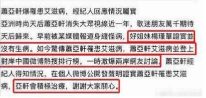 2019年5月,网络上突然流传起了#萧亚轩感染HIV#的消息。