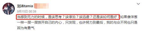 9月15日深夜,刘涛伤感发文,表示自己身心无力。