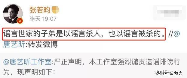 之前唐艺昕被传婚内出轨某男,老公张若昀就曾力挺,并发文表示对谣言的态度: