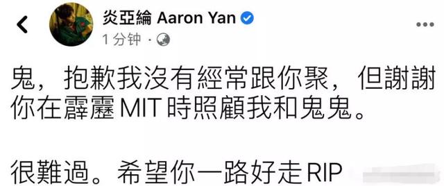 同时,杨丞琳老公李荣浩也第一时间发文悼念“朋友,一路走好。”