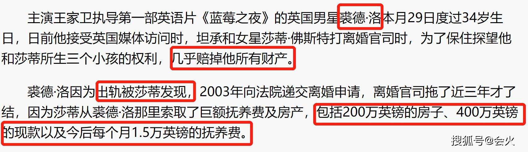 对于已经有此成绩的国际一流男星裘德•洛来说,赡养费应该不是需要头疼的问题。