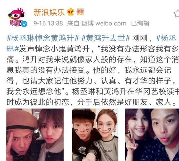 《娱乐百分百》主持人黄鸿升去世,杨丞琳发文悼念:无法形容有多痛——引言