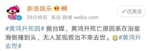 截止发稿前,据媒体报道,警方终于发布了黄鸿升死因的初步判断,分析独自呆在家里的黄鸿升是在从浴室走出来时,不慎滑倒卧倒在床边,至于具体的死亡时间并没有公布。