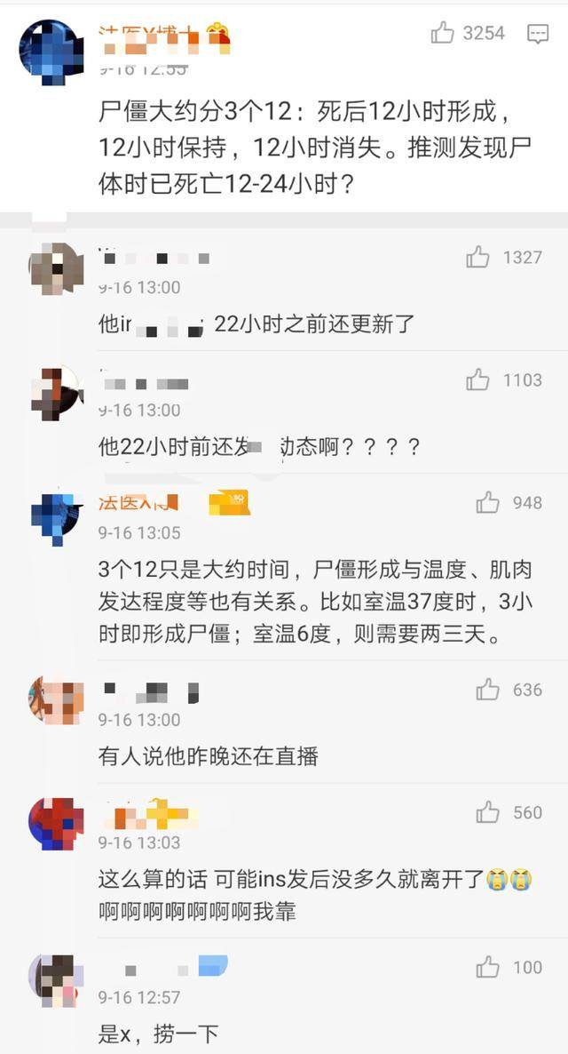 细心的网友在台媒的报道中发现了一个小细节,黄鸿升尸体被发现时已经处于尸僵状态。而根据懂医学的网友科普,尸体被发现时应该距离黄鸿升真正的死亡时间过去了12-24小时,而22小时前黄鸿升还在社交平台上晒出了狗狗的萌照,这也就意味着黄鸿升的死亡时间或许就在发完动态后不久。