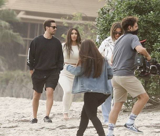 虽然这部真人秀节目不会再继续拍摄了,但是金卡戴珊还是非常敬业的录制了大结局,最后一期,近日,金卡戴珊和家人们一起现身沙滩录制节目,就被网友偶遇,金卡戴珊一如既往的打扮的超级夸张,走在金卡戴珊旁边的男士是金卡戴珊的大姐夫斯科特,不过现在早已离婚,但是斯科特仍旧出现在节目中,作为富二代的他打扮的也很有风度,黑色的宽松卫衣搭配黑色短裤,服装虽然简单,但是梳着复古油头戴着墨镜的他看起来还是很有气质的。
