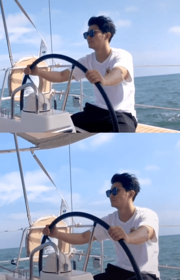 视频中,李晨选用了时下大热的“反差”效果来制作视频,前半段视频中,李晨造型帅气,在轮船上的他戴着墨镜各种摆造型。