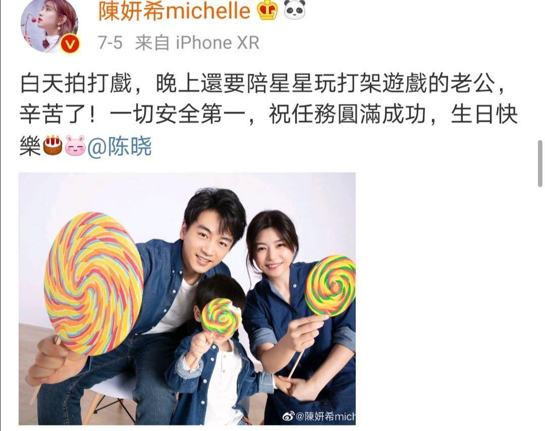 在7月5日陈晓生日时,陈妍希还卡点为老公生日祝福,一家三口的照片看起来特别甜蜜,希望他们一家三口能一直幸福下去呢!