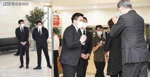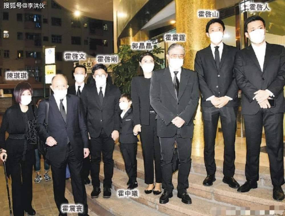 当天,霍启刚一家人身穿黑色衣服,带着口罩,表情肃穆。他与妻子牵着7岁的儿子霍中曦和3岁的二女儿霍中妍,小女儿霍中怡由保姆抱着。